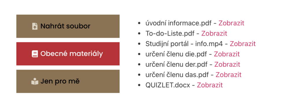 Ať už se jedná o gramatické vychytávky nebo odkazy na kvízy, vše najdeš právě v obecných materiálech, které jsou jednou ze součástí studentského portálu.